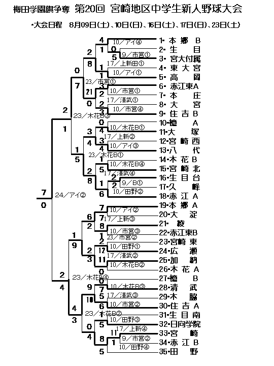 梅田学園旗争奪 第20回宮崎地区中学生新人野球大会は23日に木花Bと
