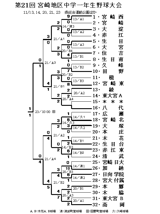 第21回宮崎地区中学1年生大会は23日に田野町営球で決勝が行なわれ