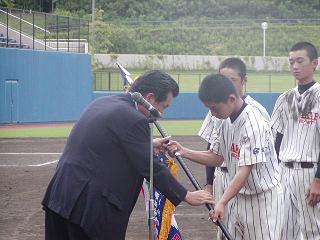 赤江東:奈須投手、住吉A:濱田投手、赤江東:矢野監督