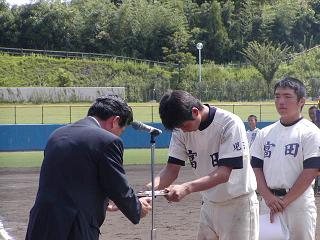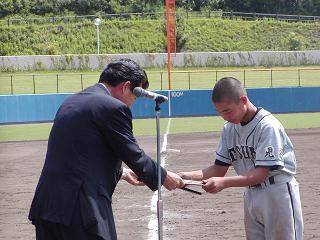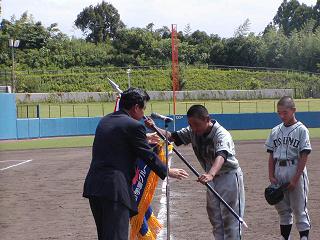 梅田社長から優勝旗授与授与、優勝盾、準優勝盾授与