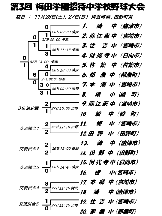 | ≪≪第3回梅田学園招待 中学校野球大会≫≫ |