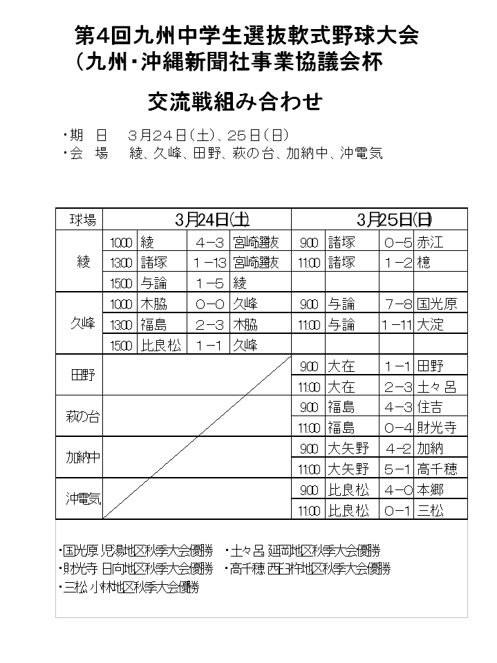 | ≪≪第4回九州中学生選抜軟式野球大会≫≫ |