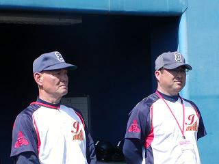 飯盛の杉町コーチ、中島監督、サヨナラ打を放った坂口選手
