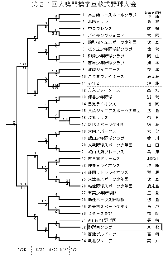 1、日 時 平成21年8月21日(金)〜25日(火) 2、場 所 徳島県鳴門市 3、組合わせ