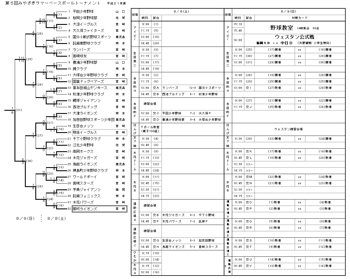 宇美ジャイアンツ   0441×│9    那珂ライオンズ    4032×│9