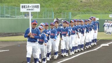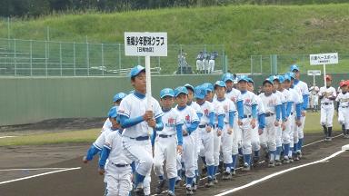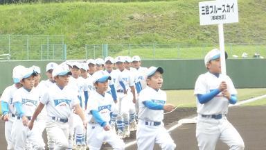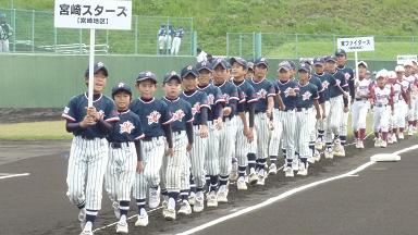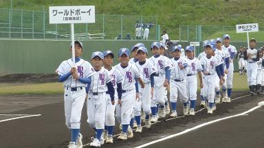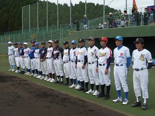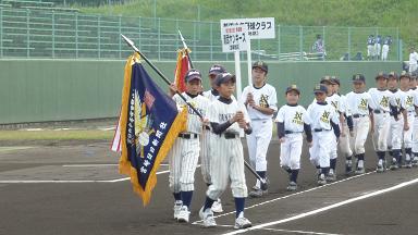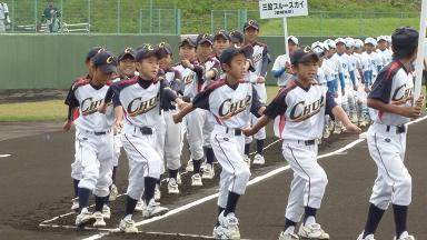 第28回 宮崎県軟式野球連盟杯学童野球大会 第28回 宮日旗争奪学童野球大会 1、期 日 平成22年10月30日(土)、31日(日) 2、会 場 清武球場、田野球場、綾錦原球場、久峰球場 3、組 合 せ 組合せ&結果 開 会 式 <10月30日 清武総合運動公園野球場> 選手宣誓は上新田:大木聖人主将 トップに戻る