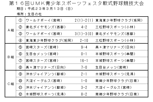 美々津マリナーズ  000040|4    生目台メッツ    0000000│0