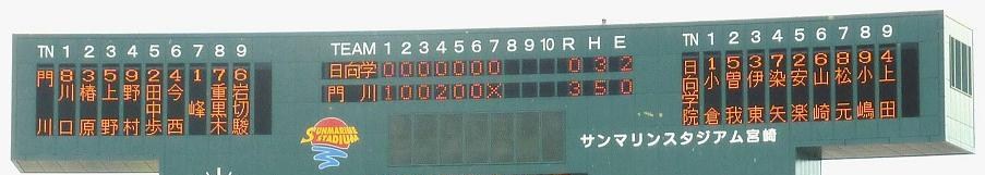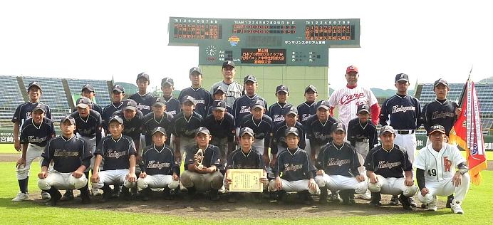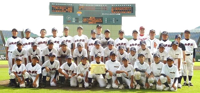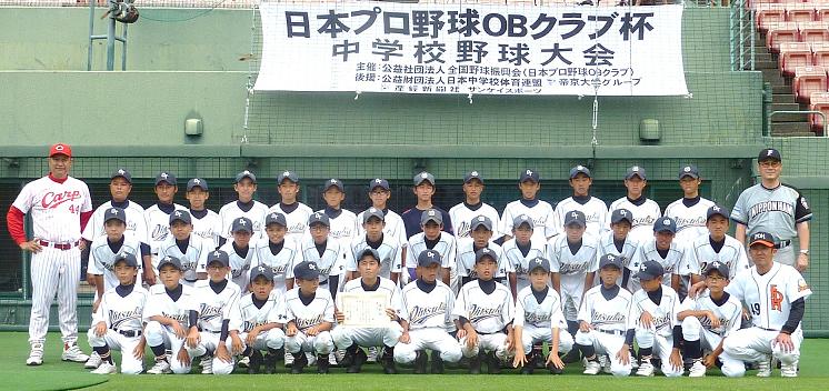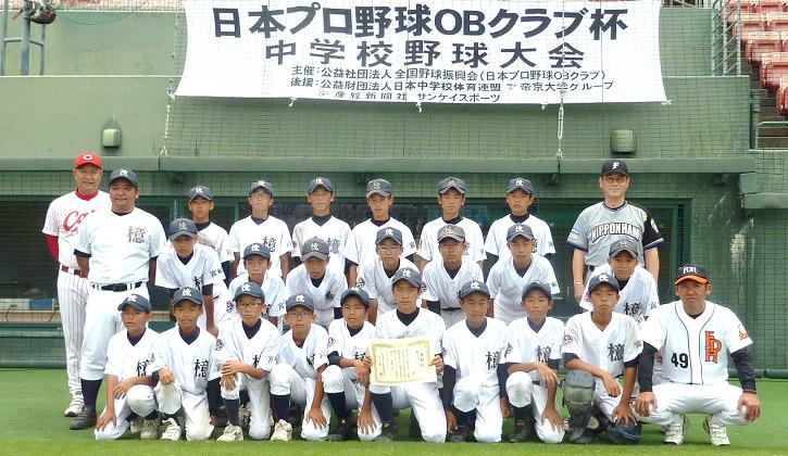 第4回日本プロ野球OBクラブ杯九州ブロック中学生野球大会 宮崎大会 1、主 催 公益社団法人全国野球振興会(日本プロ野球OBクラブ) 2、会 期 平成25年8月24日(土)、25日(日) 3、会 場 宮崎県総合運動公園サンマリンスタジアムほか <大会組合せ&結果> 門川中が日向学院中を破り優勝!!